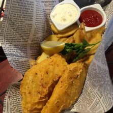 今日のランチはちょっと遅めにビールとフィッシュ&チップスで。 日曜昼ビールってゆったりのんびりでええなぁ(^^)