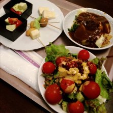 晩御飯 ラクレットにカレーかけて頂きました。ブロッコリー、かぼちゃ、じゃがいも、チキン… サラダ ピンチョス (エビ&モッツァレラチーズ、キュウリ&うずらの卵、エビ&キュウリ) カプレーゼ カマンベールチーズ やっぱりチーズ尽くしだ!アヒャヒャヒャヒャ(ノ∀`)ヒャヒャヒャヒャ 今日も12000歩歩きました。7キロ歩いた事になっているけど…!?(・_・;?合ってるのかな?