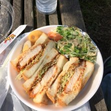 お昼は外でどんちゃんのカツサンド!桜を見ながら食べるお昼は最高です(・∀・)
