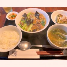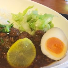 神楽坂の中華料理店でランチ。 こちはらリーズナブルで美味しいお店です。 私の頼んだルーロー飯。 スパイシーですが、辛すぎず美味しいです(^^)