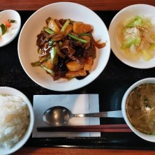 主菜の牛肉と長芋の焦がし醤油炒め美味しかった。そして、キャベツと白キクラゲの山椒油合えの副菜が全てバランスよく感動的でした!
