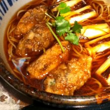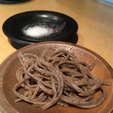 冷たいツユの鴨セイロの蕎麦。今日は変わり蕎麦の「柚子切り」をえらんでみました。柚子の香りが鴨によくあいます。40秒ほどで茹で上がる、キリッとした細麺です。