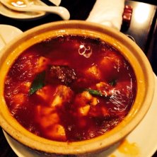 辣麻婆豆腐。土鍋でくつくつ煮えていたのでパシャリ!でも、唐辛子が苦手な私は、結局、一口しか食べられませんでした。チャレンジ精神だけは認めて欲しい。