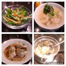 冷やし海老ワンタン麺(水と共に麺をすする感じ、出汁が!)、水餃子、愛玉子