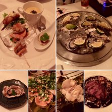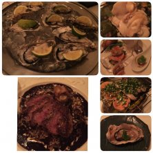 牡蠣づくし(*´艸`*) 左上 牡蠣の前菜5種 右上 生牡蠣3種 左下 焼き牡蠣 下の段真ん中2つ 牡蠣と白子とあん肝の昆布焼き 右下 ステーキのせカレー(牡蠣ものってます) 白ワイン 牡蠣だけどシャルドネではなくミュスカデでさっぱり! 牡蠣ってこんなにいろいろな食べ方があるのねって全部感動でした^ ^ 〆のカレーは絶品٩̋(๑˃́ꇴ˂̀๑) 今日も食べたい(๑´ㅂ`๑)