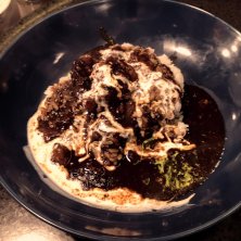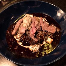 東京華麗探訪!中央区、銀座編 東銀座駅からSIX向かう裏通りのラーメン通りの こんな所にこんな店が雑居ビルの2Fに隠れ家的 牡蠣とステーキに拘る年中新鮮な牡蠣が頂ける 魅惑の牡蠣と牛肉ステーキのせ黒いカレー 人気名店、牡蠣とステーキ「楸」初訪問! 連れは、牛スジ黒いカレー、オーダー 待つ事10分程、真っ黒なカレーが目の前に現る 牛スジ黒いカレー!牛スジ肉塊ごろんごろんと スジ肉柔らか蕩ける濃厚カレーが絡まり抜群旨! カレーはスジ肉出汁染み円やかで濃厚めちゃ旨! ベースは同じだが円やか濃厚さ増しでめちゃ旨!