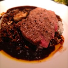 ステーキカレー 牡蠣入り 1100円。スパイシーで美味しかったです。