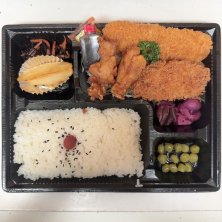「ミートショップうちの@九段南四丁目」で「日替り弁当(味噌汁付)」750円。気温:27℃。湿度:62%。晴。水曜日は「弁当の日」で、うちのの弁当は全品「50円引き」。ただし、先週から全品50円値上げしているので…。それでも近郷近在では破格のプライス。「鶏唐揚げ・小2ヶ」「イカフライ」「カニクリームコロッケ」がお約束。どこが「日替り弁当」なのかが判らない。通常プライス800円は最高価格帯に位置しており、さすがに腹は一杯になる。ただし「黒毛和牛肉弁当」850円には負ける。ごちそうさま。