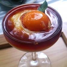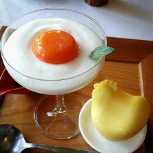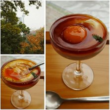 生プリン。 卵黄を崩しながら食べます。 ここでしかない味。 キレイ!