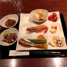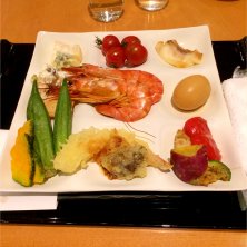 晩御飯 お腹空いたから食べまぁす! ミニトマト3個 バジルチキンサラダ チキン1切れ、トマト1切れ リコッタチーズ クラッカーに乗せて🍯 カマンベールチーズ🧀 おでん🍢 大根、卵、厚揚げ 大正エビのグリル🦐 野菜チップス オクラ、人参、かぼちゃ 秋刀魚のピリ辛焼き 生ハムサラダ かぼちゃのいとこ煮🎃 デザートは無し 今日はこれでおしまい… 天河のブュッフェなのに、これだけなんてもったいない… けど、お腹は満たされました〜〜ヽ(*^∇^*)ノ ご馳走さまでした。