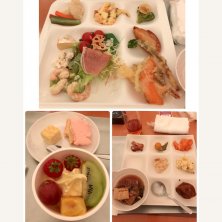 本日の晩御飯ブュッフェ いっぱい食べた〜😅💦 最後の締めは自分で作ったパフェ ソフトクリームの下にはとうもろこしプリンが入っています。周りにフルーツ飾り付け🍓🥝🍍 行者ニンニクの天婦羅、ワカサギの天婦羅 かぼちゃ、海老天 種類ありすぎて食べ切れない… 半分も食べてない… ここのホテルはお仕事でも何度も泊まっているんだけど、お仕事の時はこんなに沢山食べないし、ゆっくり悠長に食べてる時間もないので、今回は本当に食事もお風呂も楽しめました♪♪♪
