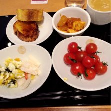 おはようございます(*・v・*)/ 朝からホテルのフレンチトースト頂きました。幸せ〜〜゚・:,。★(○'v`pq)★,。・:・゚ フレンチトーストの隣は豆腐とジャガイモの韓国風炒め…家にある材料で作れる!と思い頂きました❤︎ホテルの味にはならないけれど、似たような物は出来そうな気がします…σ^_^; 今度挑戦してみよ〜っと! かぼちゃサラダ&長芋とパプリカのマリネ 今日も1日頑張りましょうヽ(*^∇^*)ノ