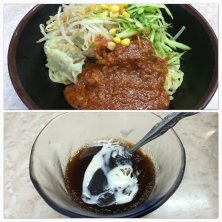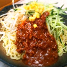 東京グルメ探訪!中央区、日本橋馬喰町編 名物、ジャージャー麺、カレーライス 人気名店「熊公」初訪問! 悩んだ挙句、極上ジャージャー麺、焼豚3枚、 雲呑3個、ゆで卵入り@¥880-、オーダー! 待つ事10分程、大きな丼にたっぷり胡瓜細切り! 脇には、ゆで卵、雲呑3個、焼豚3枚が乗っかり! ボリューミーで具沢山なジャージャー麺が登場! 茶褐色の瀞みのある挽肉入り甘辛味噌たっぷり! 麺は太めちぢれ中華麺もちもち味良し抜群旨! 口へ運べば、甘酸っぱい肉味噌味抜群ピリ辛旨! 叔母ちゃん2人切り盛りのピリ辛抜群旨な逸