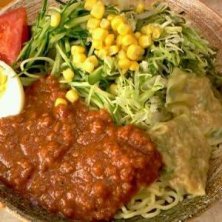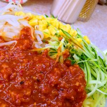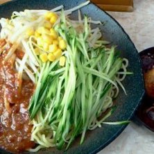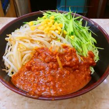 ジャージャー麺の熊公さん。 オバちゃん二人でやってます。 味は本格派、辛さも十分。ボリューム満点。 デザートにコーヒーゼリーが付いてきます^_^