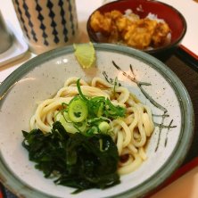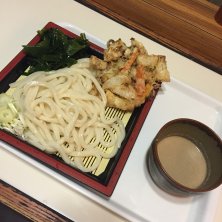 あさはん的。とり天丼と冷やし素うどんのセット。これなら、次回からはご飯なしでとり天追加の流れでいいかな…?