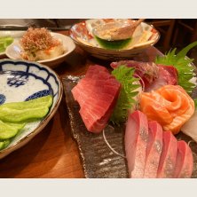 刺し盛り ねぎとろ番長 イカ雲丹和え 牛タンコロッケ まぐろのツノトロ刺身 ほほ肉の炙り
