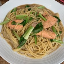 秋鮭と小松菜のアンチョビソース