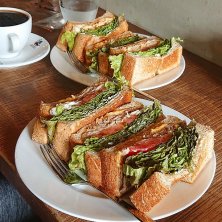 今朝はお散歩モーニングで、先日一人で来たばかりのコーヒー屋さんへ。 コーヒーの酸味が苦手なだんなは、ビターブレンドと卵サラダと生ハムのサンド。私は前回と同じイルガチェフェとハニーマスタードハムのサンド。 ボリュームでかい!レタス大量! そしてコーヒーがやっぱりおいしい。