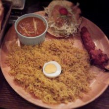 ビリヤニランチ1000円 ホットスプーンやDILよりもスパイス弱めで日本人にも食べやすいビリヤニでした!タンドリーはやわらかでおいしかったです!カレーはマトンを選択。お肉は骨無しやわらかで、カレーはトマトと生クリームベースのとても優しい味でした!あ、ナンもついてました(笑) ナンも甘すぎずふわふわでおいしかったです!