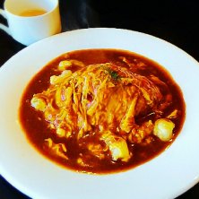こっちは娘ちゃんチョイスのとろとろオムライスなりー! ここの店長さん( H さん)、女性なんだけど メチャメチャのイケメン声で萌えるーー❤️ やばい!娘ちゃんがその声にやられました(笑)