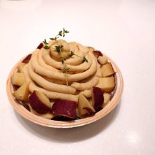 『腸活スイーツ ベイクドスイートポテトのモンブラン』 習ってきました🧁 メニュー紹介より 米粉使用でグルテンフリーにこだわり、こめ油や豆乳など体にやさしい素材を取り入れ、焼き芋を丸ごと使ったモンブランクリームは食物繊維も豊富で、甘さ控えめながらボリューム満点の味わい 焼き芋にすることでさつまいもの甘さを引き出し、さつまいも好きにはたまらない、ヘルシーに楽しめるスイーツ♪ モンブランクリームのさつま芋は裏ごししないので、モンブランの口金は使えず、絞りが太い… 相方にはちょい甘かったみたい
