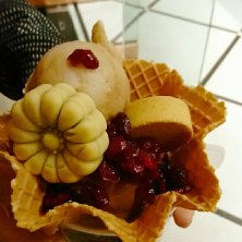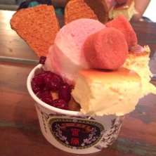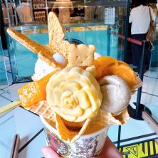 行ってみたかったので、ホテルからタクシーを飛ばして。 いっぱい種類があって、迷っちゃって、店員さんのオススメのを。 ビターなチョコアイスとアッサムティーにライムのアイス。チョコは見えない…。 トッピングはドライクランベリーにパイナップルケーキと、あとひとつは…なんだったかな?伝統菓子? ワッフルコーンも日本で食べるのよりも薄くて軽め? おいしかった♡けど、オナカいっぱい。 このあと、ショップへ。日本語のできる店員さんがついてくれて、かわいいパッケージのお菓子をスムーズに買えてよかった♡