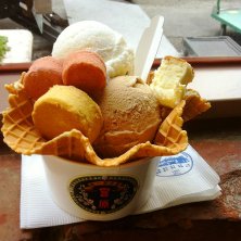 有名な台中にあるお店 トッピング三種類までできてアイスが大きい~
