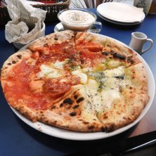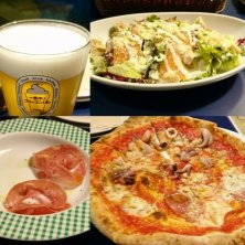 今週の天国のピザロード。トンナータ&プロシュート、伊野菜のサラダ、スモークサーモンマリネ、ティラミス、一番搾り×2、コーヒーで4482円。神環境。最高。