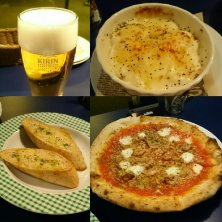 今週の天国のピザロード。トンナータ、小海老のアヒージョ、パン、一番搾りで2,808円。なんとなく一番搾りは1杯にしといた。神環境。