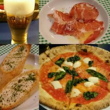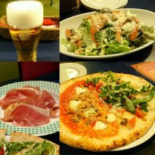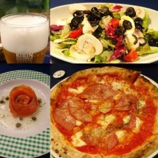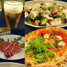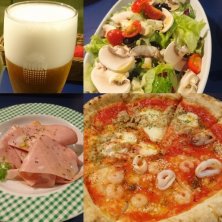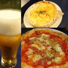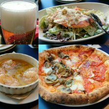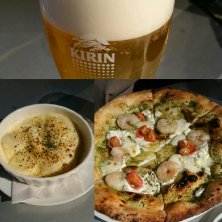 今週の天国のピザロード。ディアボラ&フンギ、シーザーサラダ、小海老のアヒージョ、一番搾り×2。3,402円。神環境で最高。