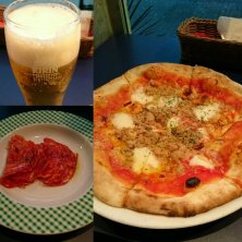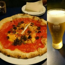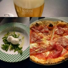先週の天国のピザロード。プロシュート、ポッコンチーニ、一番搾りです(レシートより)。団体客が居て滅茶苦茶混んでた。
