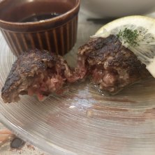 私が注文したのは「常陸牛のレアレアハンバーグ」 その名の通りレアレアのハンバーグが来ます。 焼き石も持ってきてくれるので、そこで自分のお好みで焼いて食べます。 肉の甘みも味わえてこれはまた食べたい(≧∇≦)水戸まで来た甲斐がありました(≧∇≦) 2017.5.21