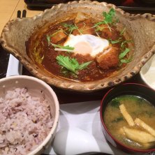 チキンの味噌カツに定食です! お肉がジューシーで美味しかったです! 足りずにお父さんのお肉を一切れとお母さんのお肉を一切れもらいました、、、 最近で太っちゃいましたーw