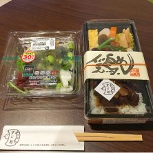 今夜の夕食(๑´ڡ`๑) 金沢駅の中?にある すずめ というお気に入りのオーガニック系ごはん屋さんのお弁当♡ 今日は鶏めし♪ ここの白豆大福もとーっても美味しかったです♡ お野菜 足りないから、能登もずくのネバネバ海藻サラダも(๑´ㅂ`๑)ŧ‹"ŧ‹"ŧ‹" ホテル暮らしは食べすぎちゃいます…(◎_◎;) 帰ってからダイエットする!!!(宣言しとく。笑)