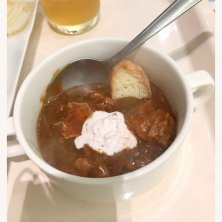 ワゴンサービスでビーフシチューが来たよ。 真ん中はハスカップクリーム お肉柔らかくて美味しい〜😍❤️