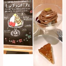 本日の晩御飯ブュッフェのデザート 目の前で作ってくれるモンブランパフェ 4種の木の実のタルト