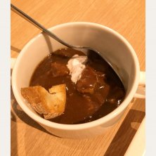 ワゴンサービスで回って来たビーフシチュー ハスカップクリームを添えて