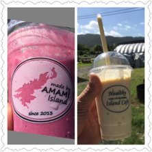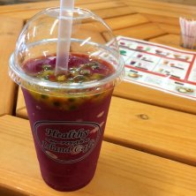 マルシェをしているスムージーカフェへ! ドラゴンフルーツとパッションのスムージー(*☻-☻*) よもぎとはんだま、はちみつも入ってます!