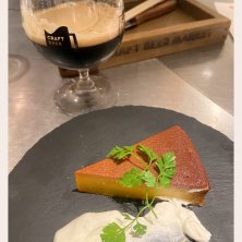 かぼちゃのプディングとエクリプス2024@ Fifty Fifty Brewing(米カリフォルニア州)🎃🍺 パーボン樽で寝かせた12%の濃い黒ビールにかぼちゃプディングの濃厚な甘さがバッチリ合います👌