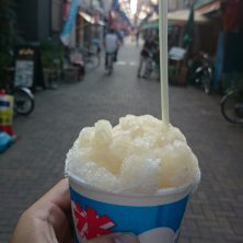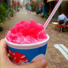 港屋のかき氷のたまにしか食べられない激レアフレーバーすっぱい味。梅シロップのような甘酸っぱい味わい。