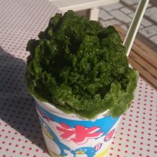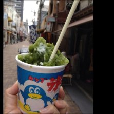 今日はこの盆休みで唯一の休日。いつも行列してる近所の和菓子屋さんがガラガラだったので、久しぶりにかき氷。はーまったり。