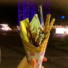 福岡タワーそばのクレープ&ソフトクリーム屋さんでチョコバナナソフト🍦