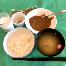 本日の朝ご飯ブュッフェ 納豆カレーパワーで今日一日頑張る💪 レストラン激混みで他のおかずは見る事も出来ず、空いてる所がご飯、味噌汁、納豆、カレーでした。 でもこれだけで充分🙆♀️ 納豆とご飯が有れば満足です 今日も1日頑張ろう 行って来ます