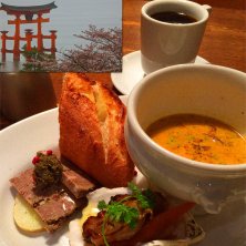 宮島に来ました! 朝ごはんがわりにバゲットサンド 高齢な四人家族なので二皿頼んで一つずつ コーヒーはルワンダ 以前はあったハートランドがメニューから消えてました…(-_-;) 朝から飲むような人はおらんのか…(-_-;)