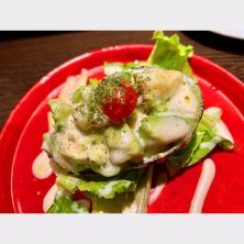 エビとアボカドのクリームチーズサラダ。 白ワインとの相性が良すぎて行くたびリピしたい。