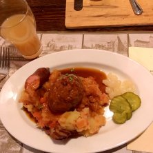 旅の最終日。ラストディナー。 オランダ料理です。アムステルダムでいただきます。マッシュルームとお肉、ソーセージ、豆。 無事に旅が終わりそうな気配に感謝をして。 Hutspotという料理☆