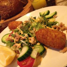 3品目〜 コロッケです! 小エビのクリームコロッケが最高! ルッコラと一緒に食べるのがすごくおいしいんです〜