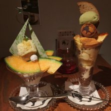 すすきのに構える夜パフェ専門店【パフェテリア パル】に訪問しました。 酒の〆はラーメンではなくパフェを食べるのが札幌スタイル。パフェテリパルは夕方にオープンし深夜2時まで営業しております。 カウンターとソファー席からなる店内は薄暗くBARの様なシットリとした空間。 メニューを眺めるとパフェは6〜7種類ほど。季節の食材を使用し、アイスに至るまで全て手作り。旬に拘るメニューは全て期間限定。 ドリンク(お酒)とセットになった1800円のパフェをオーダー。ドリンクはワイルドターキーを注文