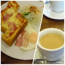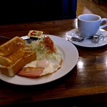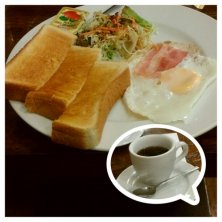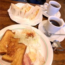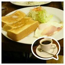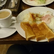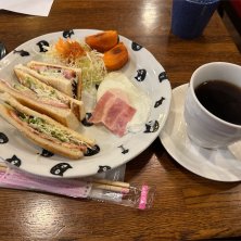 ハムトーストモーニング。 開店8時だと知らず(7時とウェブに書いてあったので)開店前に来てしまったので、親切に対応していただいて、「お客さんにもらったから」と柿までサービス。 食事もコーヒーも美味しくいただきました。 マスターの人柄に感謝。
