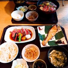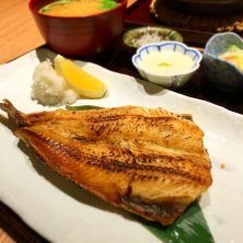 真ホッケの干物、ごはんセット。 みそ汁を+170円でアサリ汁に変更。 アサリは本日漁れたてだって。(≧∇≦) ごはんはおかわり自由。 白米だけでなく、炊き込み御飯や16穀米も自由に選べる。 健康的な食事(^-^) 美味しくて、ホッケは骨や尻尾まで食べちゃった